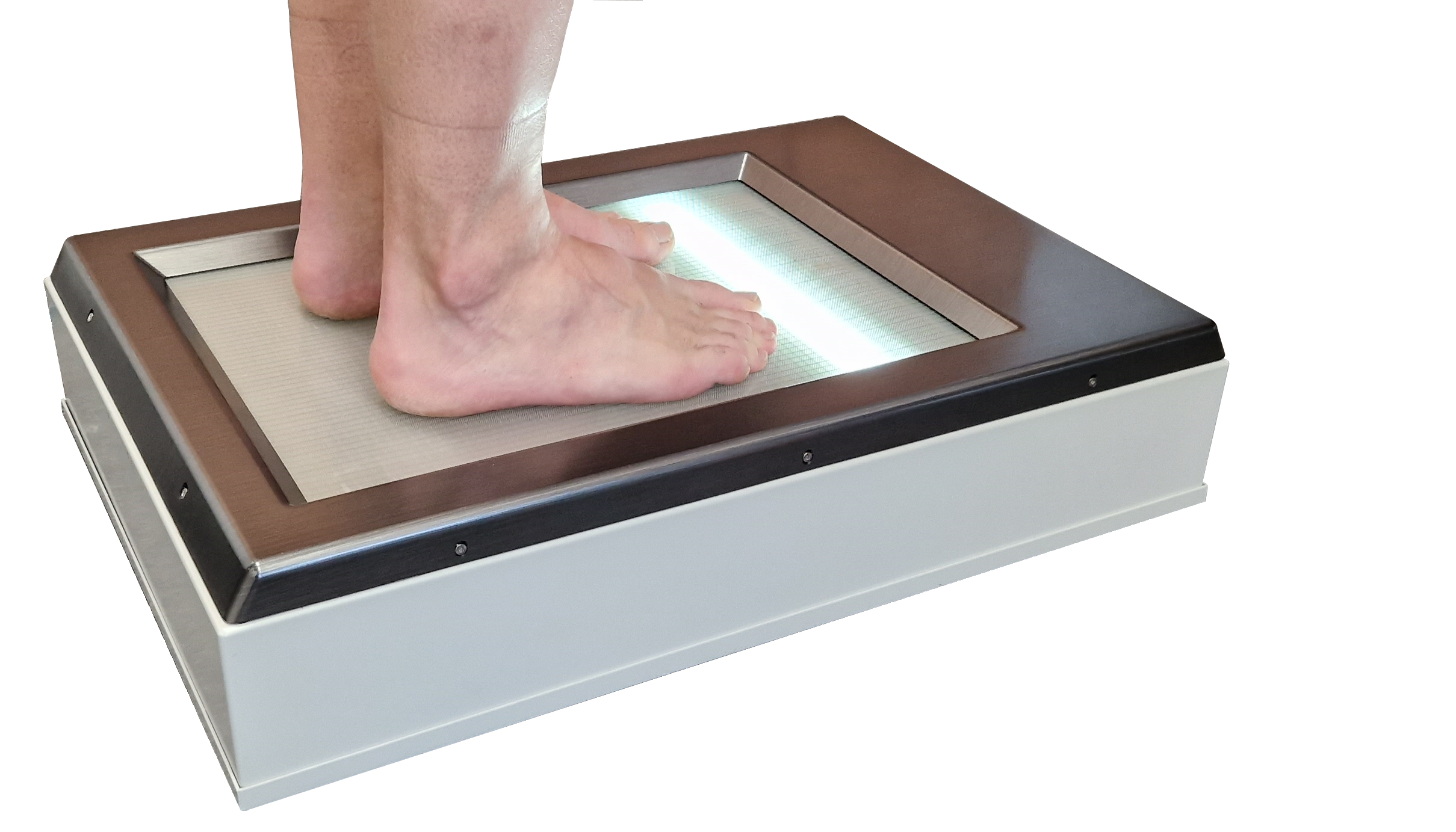 Fußscan in einem Gerät, um damit Platz, Zeit und Kosten im Versorgungsalltag einzusparen. Die Auswertung beider Informationen in einer überlagerten Anzeige verhilft zur optimierten Fußanalyse.