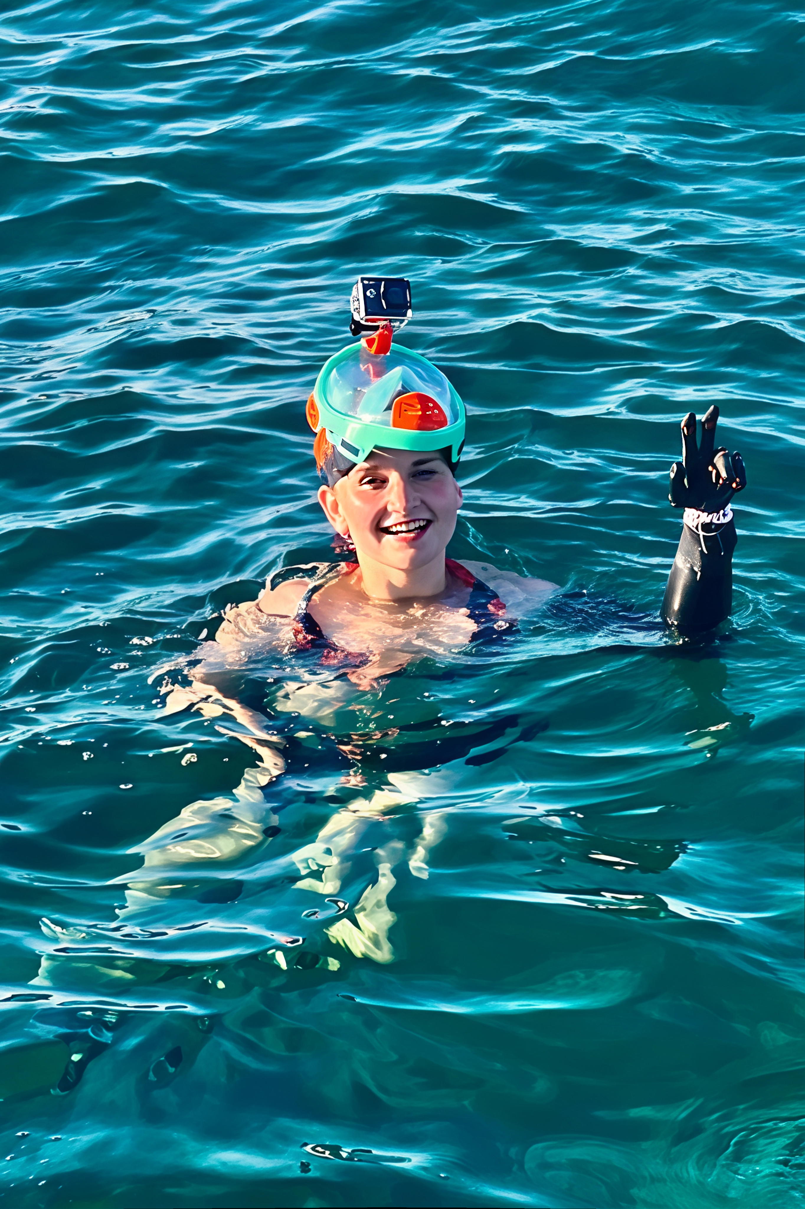 Fig. 2: Lara Wilkin snorkeling on vacation. As a user of modern arm prostheses, she knows the demands of everyday life from her own experience – perspectives that she brings to the further development of prosthetics as a doctoral student and speaker at the OTWorld 2026 World Congress. Photo: Lara Wilkin