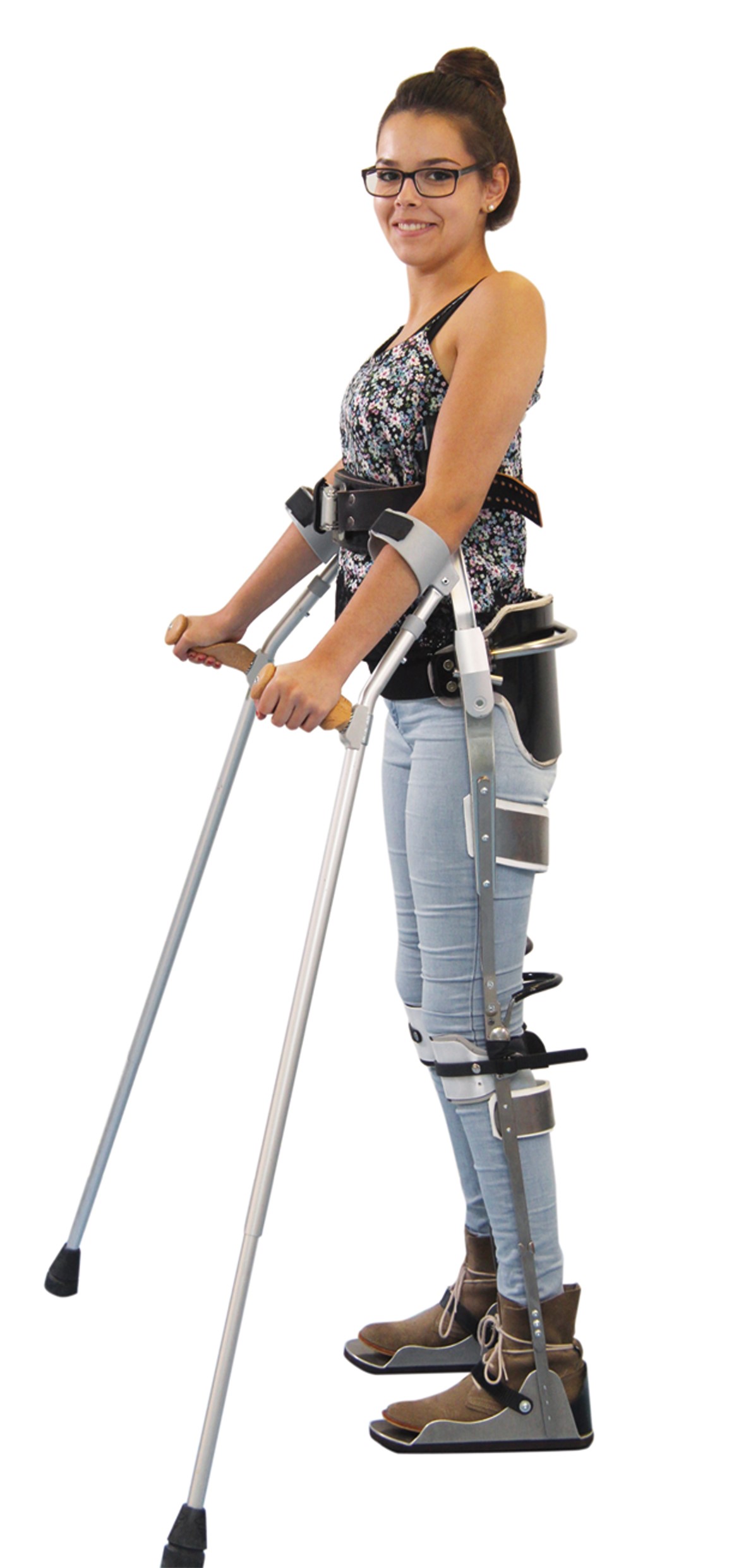 When used in conjunction with forearm crutches or walkers, the mechanical exoskeleton now enables walking: by shifting your weight to one side, the leg on the other side can be swung forward freely.